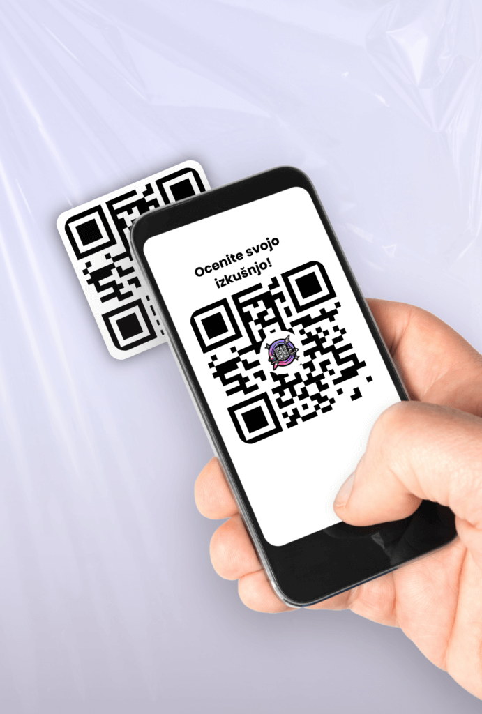 Naša QR koda za ocenjevanje omogoča gostom, da hitro in enostavno pustijo oceno – brez iskanja povezav ali dodatnih korakov. Preprosto skenirajo kodo in oddajo mnenje, kar poveča število ocen in izboljša vašo spletno prepoznavnost.